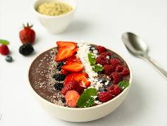 - Add the fresh raspberries, strawberries, and orange slices to the bowl.