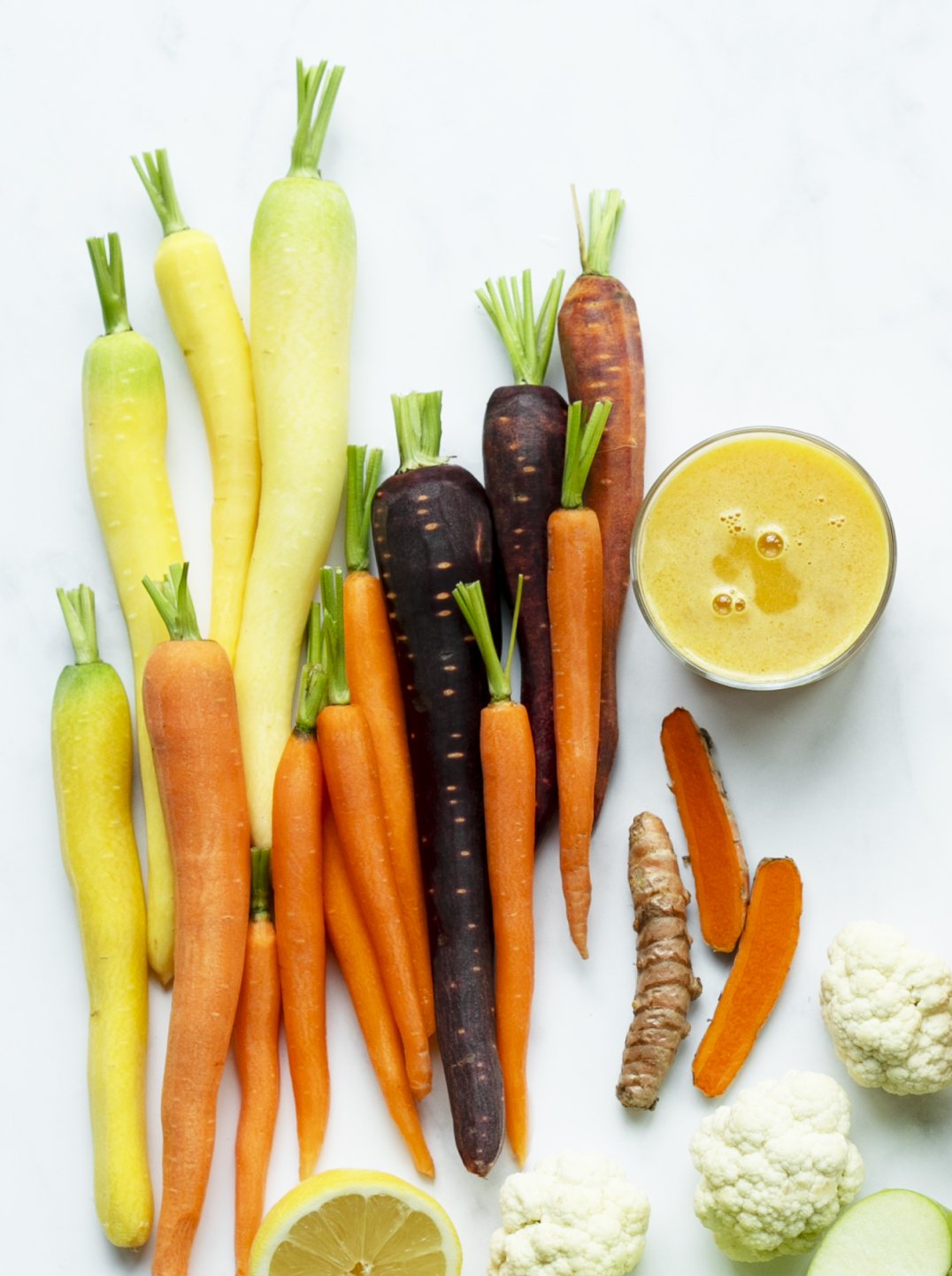 This unique twist on carrot juice packs a powerful punch with the addition of cauliflower, which is known to help improve gut health and exhibit cancer-fighting properties, especially when combined with turmeric.