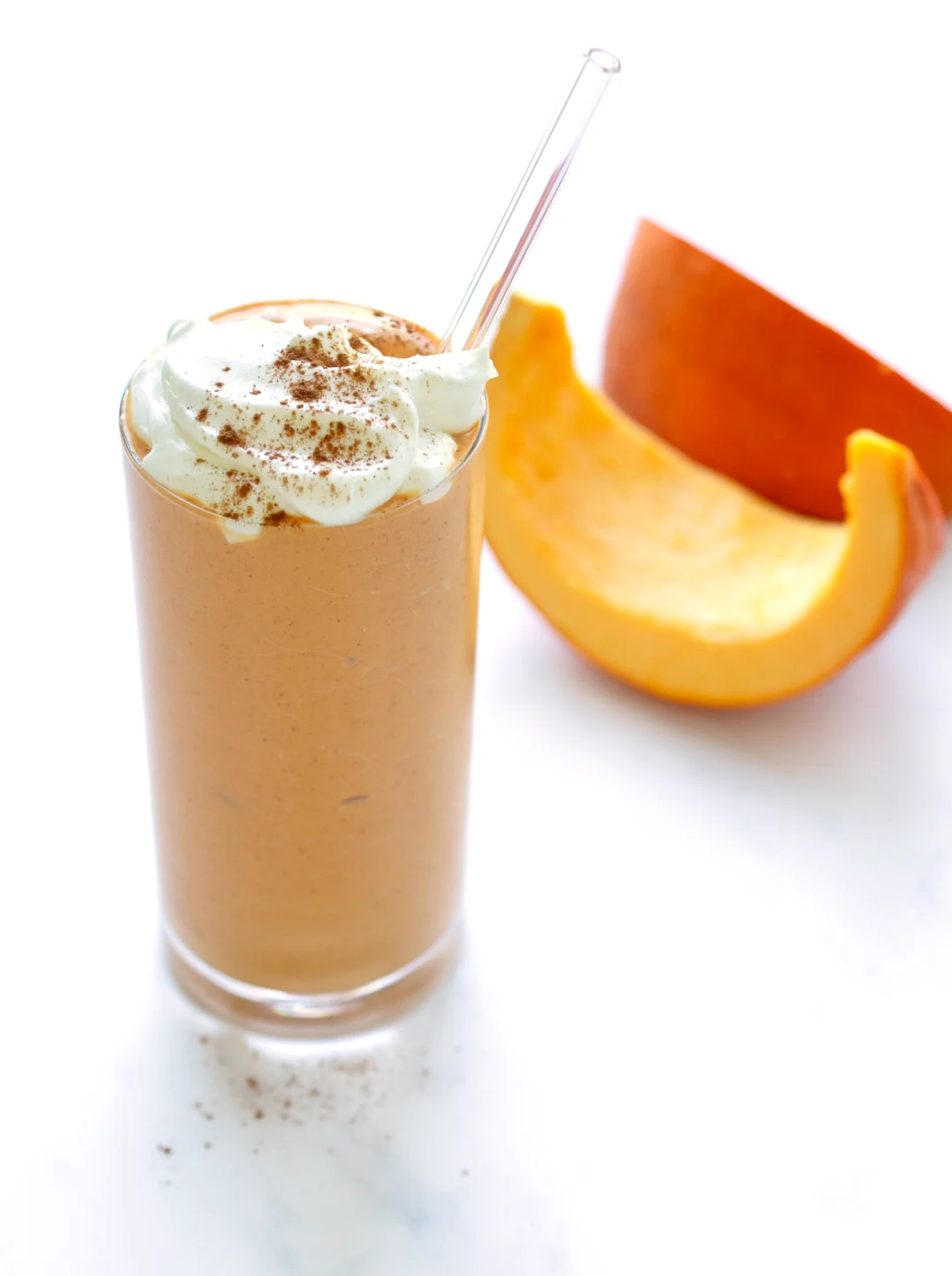 This pumpkin smoothie captures all the flavors of fall in a glass. Tangy coconut yogurt blended with creamy cashews gives it a cheesecake-like twist, making it the perfect plant-based healthy treat to celebrate everything we love about the season.