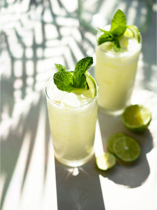 - Combine the juice with coconut milk and sparkling water and mix well. Pour into a glass with crushed ice, and enjoy.