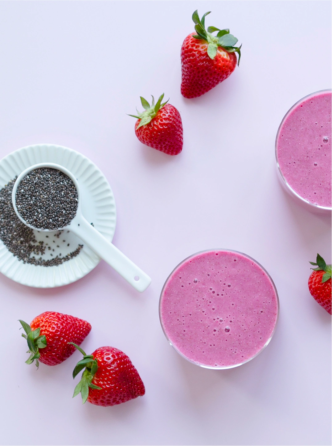 A smoothie that brings together chia seeds, strawberries, banana, and a fiber-rich juice base to support gut health. The mix of soluble fiber and natural prebiotics helps nourish beneficial bacteria while keeping digestion steady.