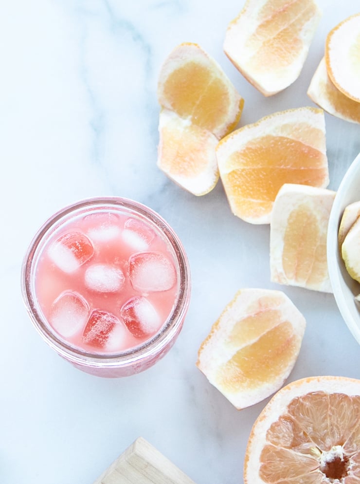 - *alternatively – fill glass with ice, pour in juice to 2/3 full and then top with mineral water